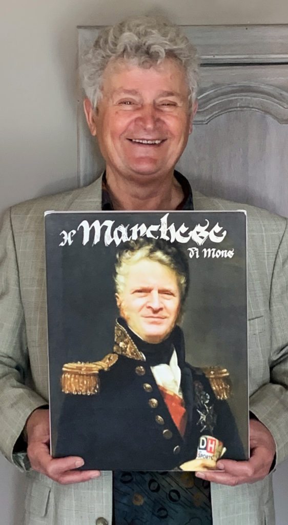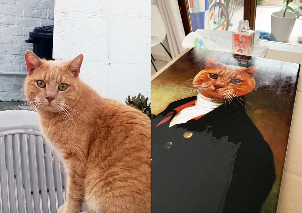 6- Portrait de « Crispy » en costume, inspiration d’un des pionniers en la matière : Thierry Poncelet (parce que c’est devenu très répandu maintenant). Compo Photoshop, Impression et montage sur châssis + vernis.