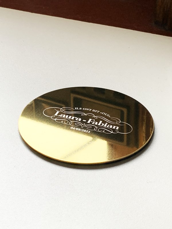 5- Sous-verres métalliques avec gravure (mariage)